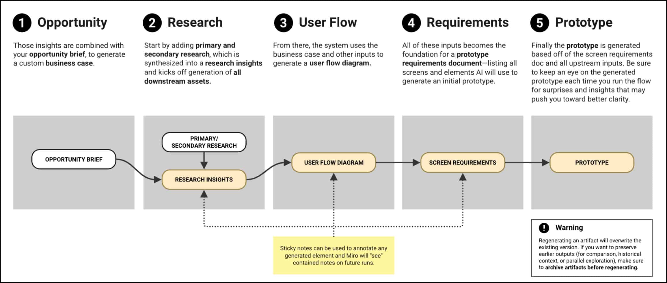 To prove this approach, we built Instant Prototyping—a Miro AI Flow designed to help teams move from an opportunity to a prototype in minutes.