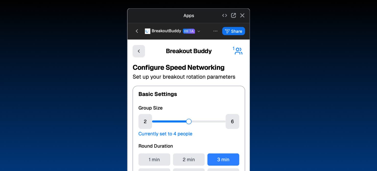 The first major product we built using Instant Prototyping was Breakout Buddy, a revolutionary Zoom facilitation app that gives hosts unprecedented control over breakout sessions.