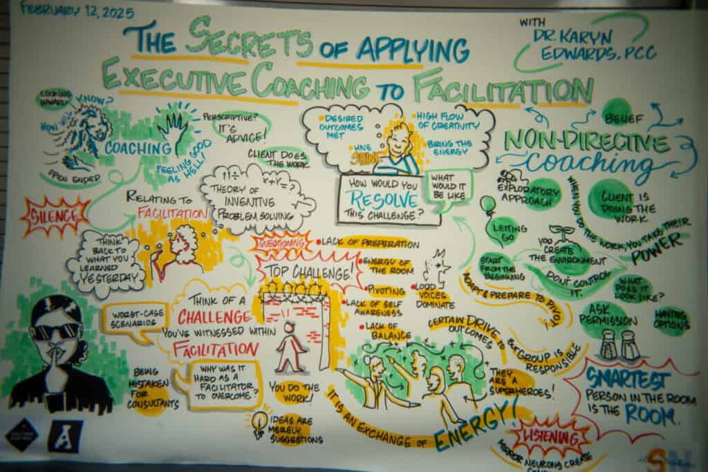 Dr. Karyn Edwards’ session was a powerful reminder of the synergies between coaching and facilitation. By blending non-directive coaching with facilitation techniques, she empowered participants to embrace a more reflective, adaptable approach to their work. Her dynamic, engaging session left everyone inspired to incorporate new insights into their own facilitation practices.