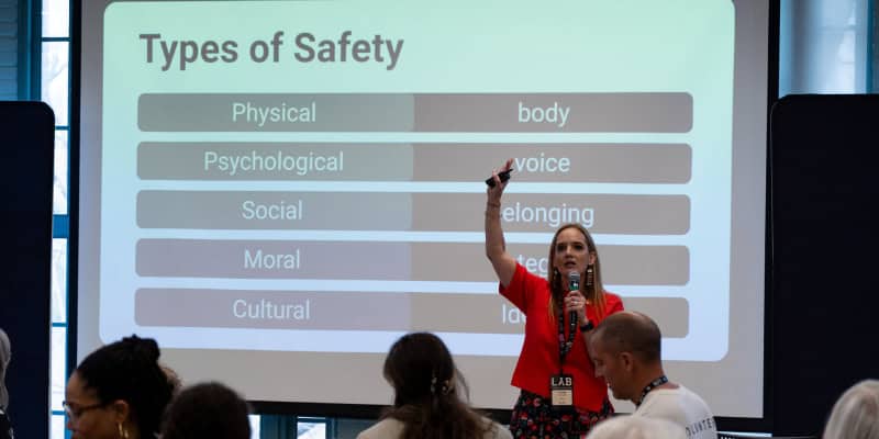 Trudy Townsend centered the afternoon on trauma-informed facilitation, grounding the conversation in a layered definition of safety: physical, psychological, social, moral, and cultural. Her core argument was direct — facilitator regulation shapes the room. It is our responsibility to show up regulated, and to remain present enough to hold the space we’re creating.