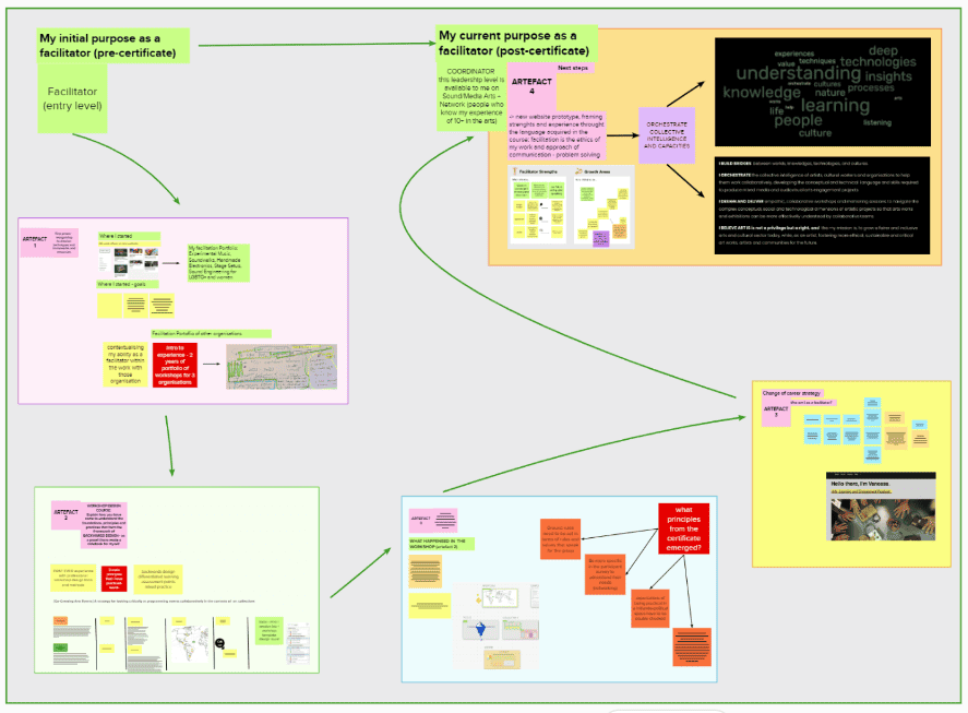 The first transformation was like tidying up an overflowing closet – I reorganised my website. Before, my artistic practice and facilitation portfolio were entangled in one website, confusing for all my audiences. The certification journey helped identify the thread of ‘facilitation’ woven through both my practice’s initial flirtation with education in Brazil and my freelance work in London. I understood that facilitation was present not only in delivering workshops, but also in coordinating collaborative projects, participating in work groups, and even in residencies or exhibition projects, making decisions with curators, producers and artist groups. This clarity allowed me to weave a fresh portfolio with a more lucid storytelling narrative which started by identifying my facilitation ‘artefacts’: