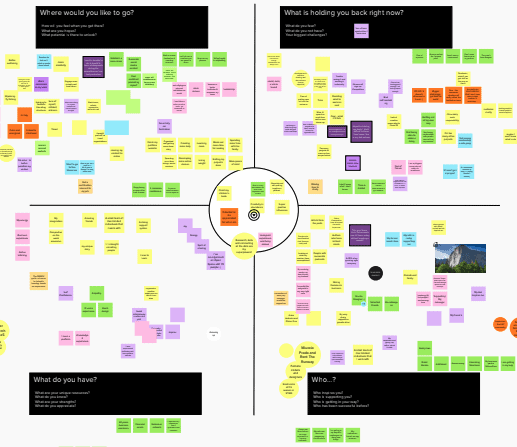 The virtual meeting platform gathers everyone into a main meeting room. Note: ask everyone to turn on their video! It’s crucial to foster the missing element of physical human connection when working remotely. Zoom also has built-in rooms that you can use to assign participants to breakout rooms. We’ve found this especially helpful during storyboarding. The feature to automatically route participants in and out of breakout rooms and back to the main meeting room makes the virtual facilitation experience much easier. You also have the capability to mute all participants at any time (cancels out everyone’s individual background noises) which is helpful when giving directions or speaking to everyone all at once in the main meeting room.