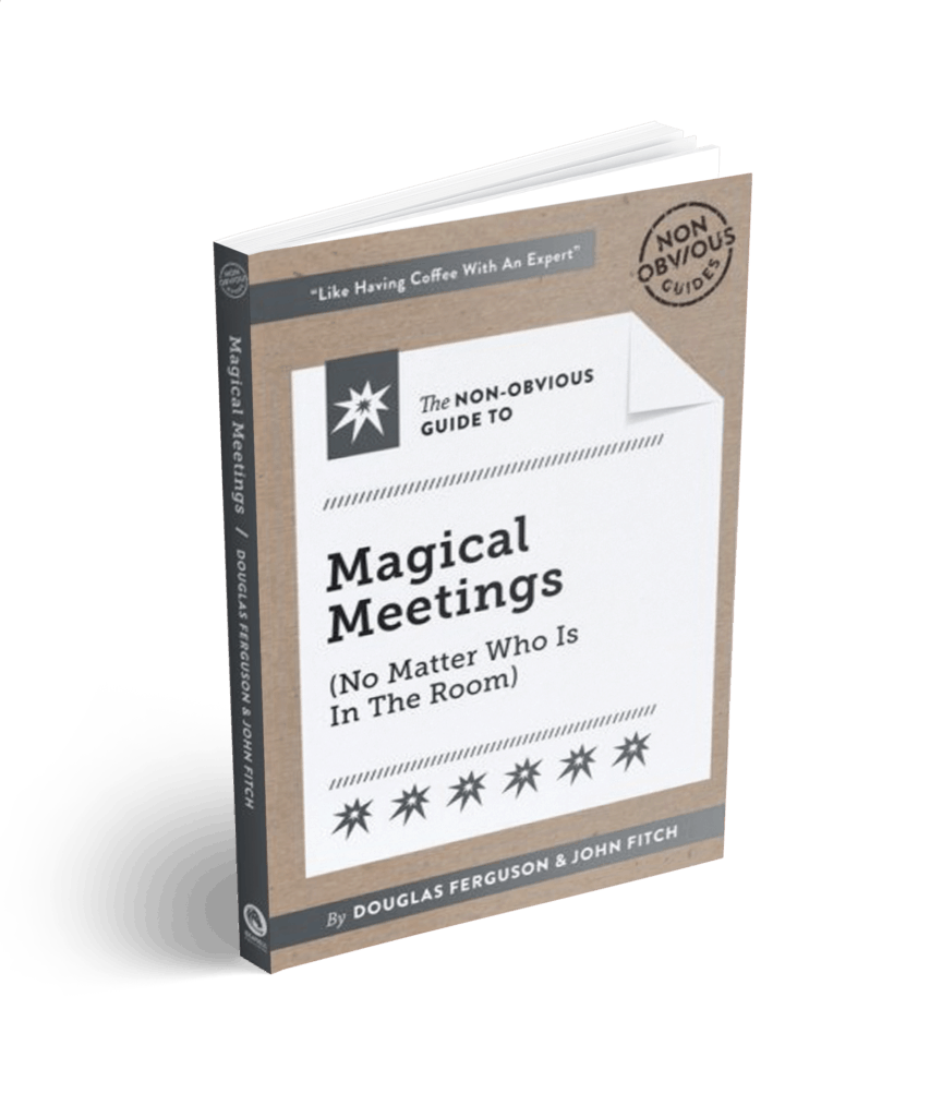 Check out Douglas Ferguson and John Fitch’s upcoming book, The Non-Obvious Guide to Magical Meetings (No Matter Who is in the Room) & our online Magical Meetings Course.