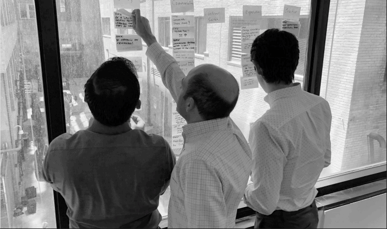 IBD Invest engaged in a four-day Design Sprint, led by Voltage Control. The team started the first day by imagining their desired end result and the risks along the way. Then, they worked backward to figure out the steps they needed to get there.