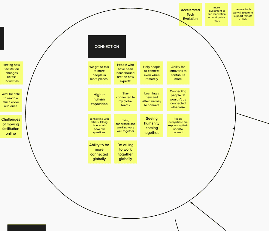 There was great optimism about the future of facilitation across the board. Many participants saw major opportunities in this transitional time to enhance connection with their teams and clients, acquire a new virtual skillset, teach others, and collaborate on a global scale, to name a few.