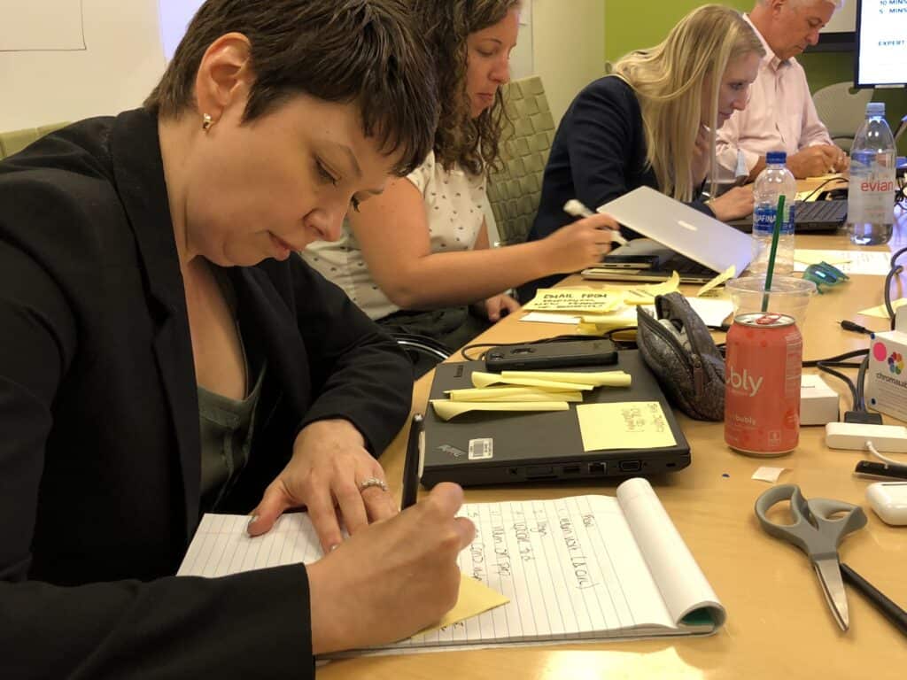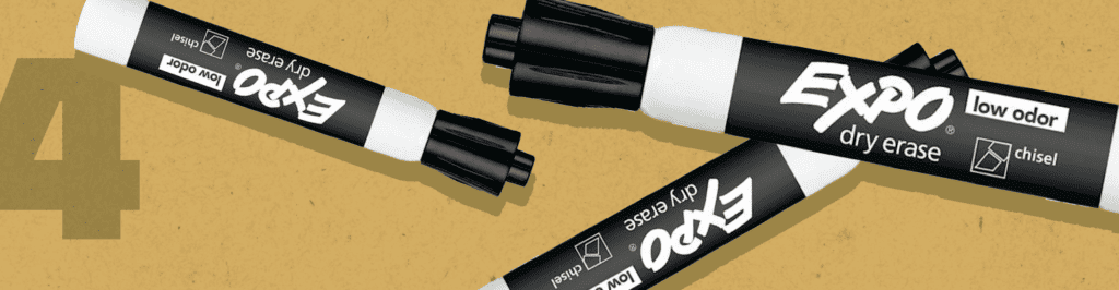 The 3×5 Post-it notes are the number one tool for capturing your thoughts during the workshop. Make sure to get the canary yellow as they provide the best contrast when reading from across the room. Make sure you buy the standard Post-its and not the “Pop-Up” that are arranged in an accordion pattern. If you get the “Pop-Up” variety you will end up writing upside down and they will flop down when you put them on the wall. Size matters, as the landscape perspective works perfectly when capturing big ideas with the larger markers. This combination helps you write just the right amount. Also, when sketching, the 3×5 Post-its work well as either a desktop display in landscape orientation or a mobile screen in portrait orientation.
