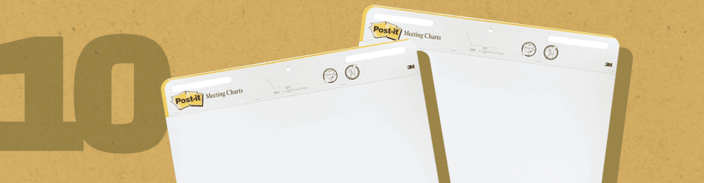 If you have limited whiteboard or wall space for post-its & sketches, flip charts can save the day. Consider getting 1 or 2 pads just in case you need them, they always seem to come in handy, especially if you can’t reserve the same room for the full week.