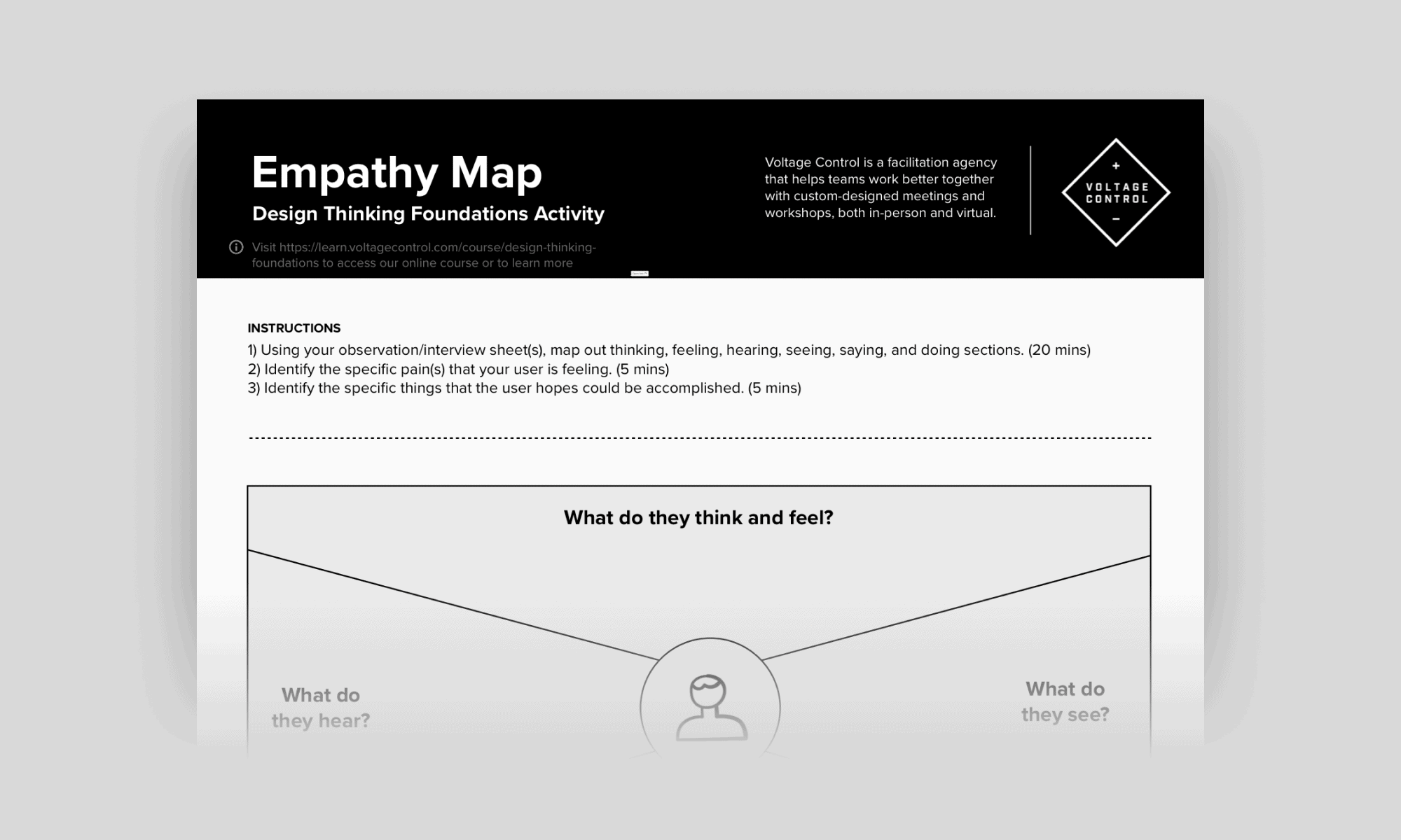 Utilizing observations or interviews, map out thinking, hearing, seeing, saying, and doing to identify the specific pain your user is feeling. This will help you identify specific things the user hopes could be accomplished.