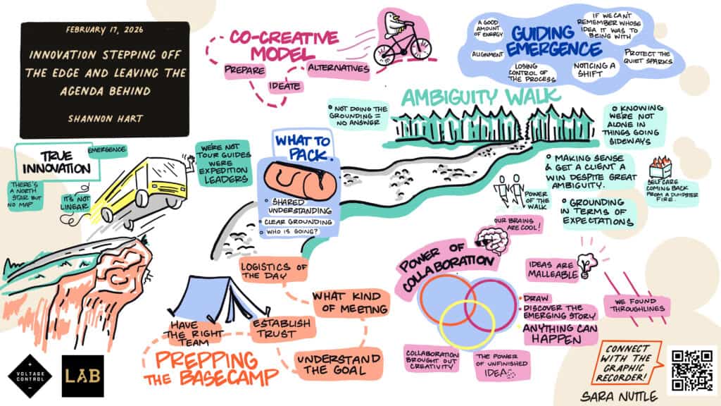 ]]>At the 2026 Facilitation Lab Summit, Shannon Hart brought five years of facilitating innovation sessions at Shell International—working with geoscientists, petrophysicists, and data engineers on complex energy sector challenges—and used that hard-won experience to offer a session that was as much expedition as workshop. Her talk, “Innovation: Stepping off the Edge and Leaving the Agenda Behind,” made the case that real innovation doesn’t happen because a facilitator planned the perfect session. It happens when a facilitator creates the right conditions and then trusts what emerges.