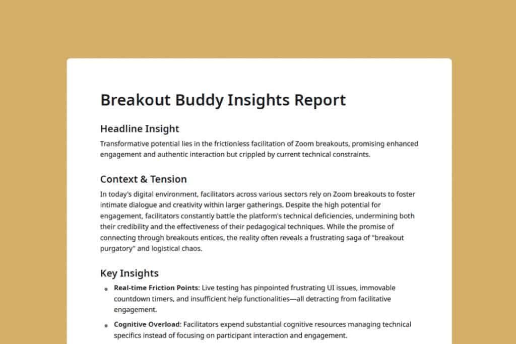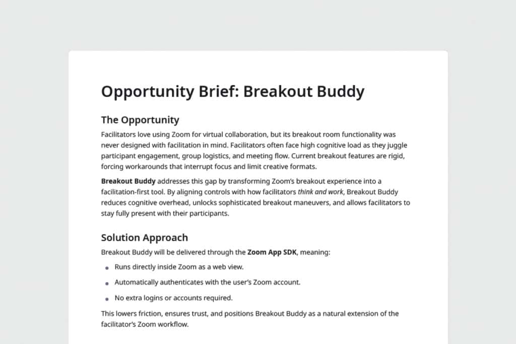 Focusing on this final version of the prototype, consider what changes still need to be made. Edit the Prototype directly or tighten upstream inputs/prompts and Re=Run the Prototype. And Remember: when the AI is “wrong,” it’s useful—it surfaces gaps and preferences fast, accelerating alignment.